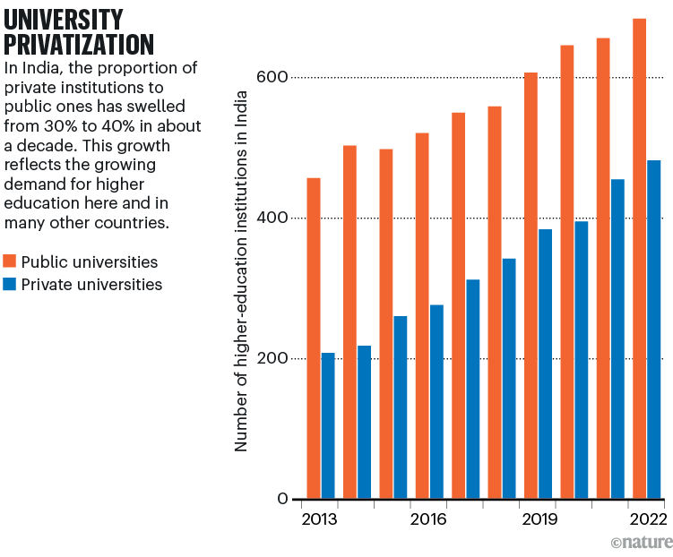 私立教育的质量也引发担忧。接受《自然(Nature)》杂志采访的研究者表示,除美国、日本等少数国家外,全球多数地区的私立高等教育机构质量普遍低于公立机构,部分原因是私立院校监管相对宽松。乔维透露,非洲私立大学中,拥有博士学位的教职人员比例最高仅约40%。