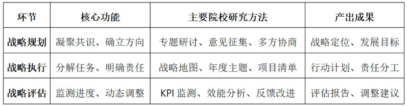 在“共同创造”模式中,战略引领机制是实现院校研究从被动响应向主动引领转变的核心环节。该机制通过IR的专业介入与多元主体的协同参与,构建了从战略生成、传导到评估的完整闭环,形成了“证据驱动、全员参与、持续优化”的战略治理新范式。