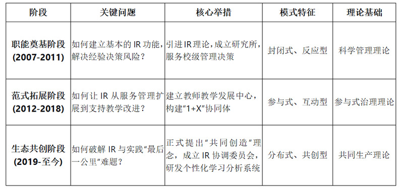 表1 文华学院“共同创造”IR模式发展阶段表